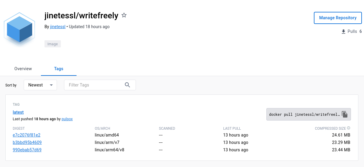 Luego, tras realizar un kubectl create -f con el archivo del pipeline run, tras unos minutos tengo una imagen multiarchitectura subida en el repositorio de imágenes, un amor!